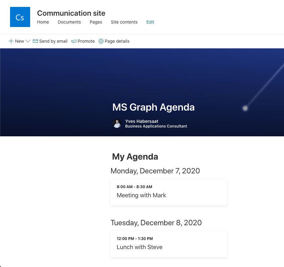 In my case, I started the analysis on a page I made on a out of the box Communication site with a custom SPFx web part inside that I have developed for this article.