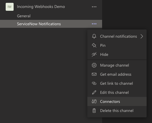 Incoming Webhooks are Microsoft Teams special type of Connector which provide a great way to share content and send notifications in team channels from your external line of business applications. In this article, I’ll show you how to configure an Incoming Webhook in a team channel and use it to post an Adaptive Card when a new ServiceNow incident is assigned to this specific team. Let’s have a look at this deeper now!